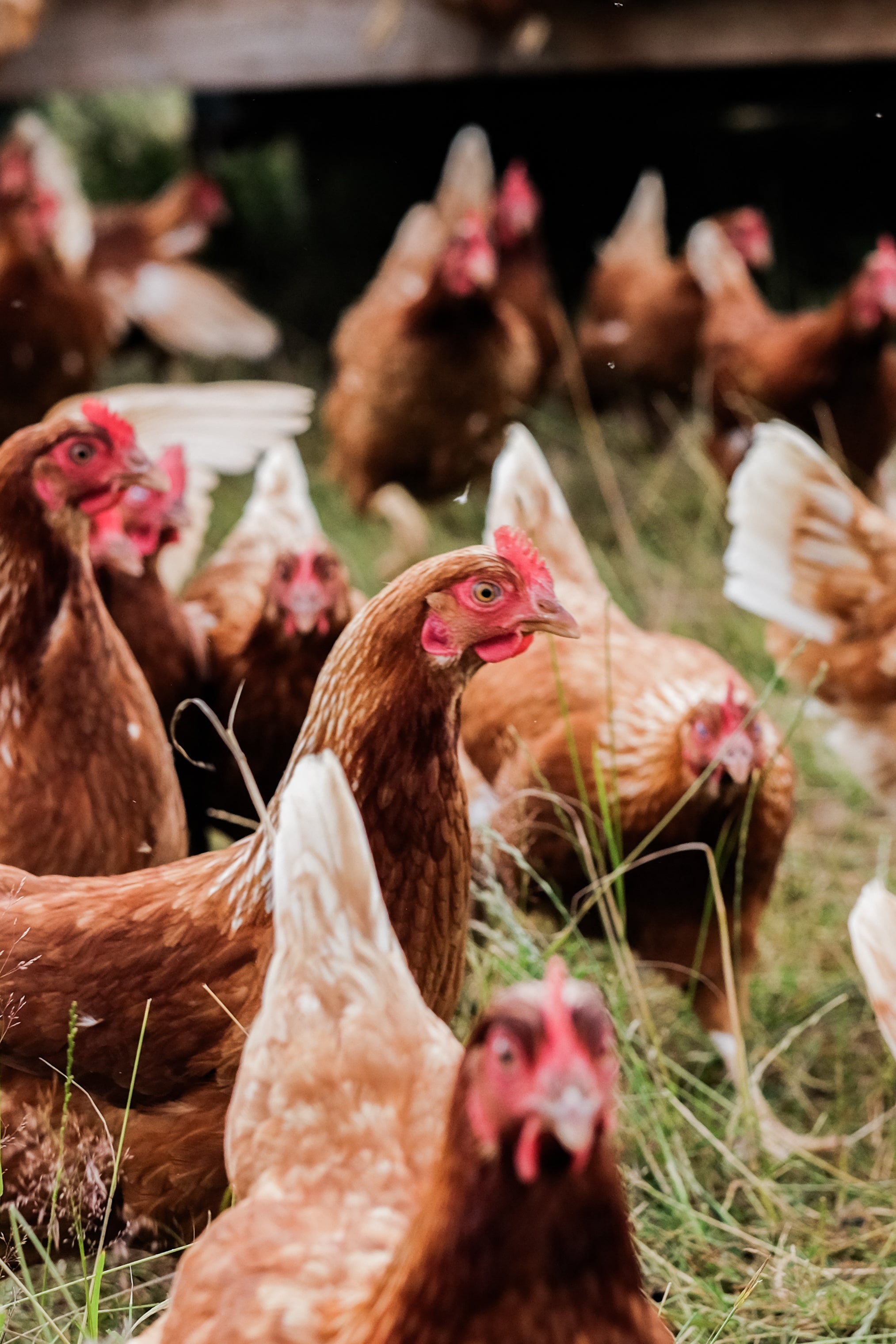 Pasture-raised birds get to supplement their diet with a plethora of fresh plant species which produces a nutritious egg with twice the vitamin E and omega 3 fats than that of conventionally raised laying hens. It should go without saying but farmed animals should not have to eat where they poop…another reason why our birds are happier and healthier for being moved around the farm.