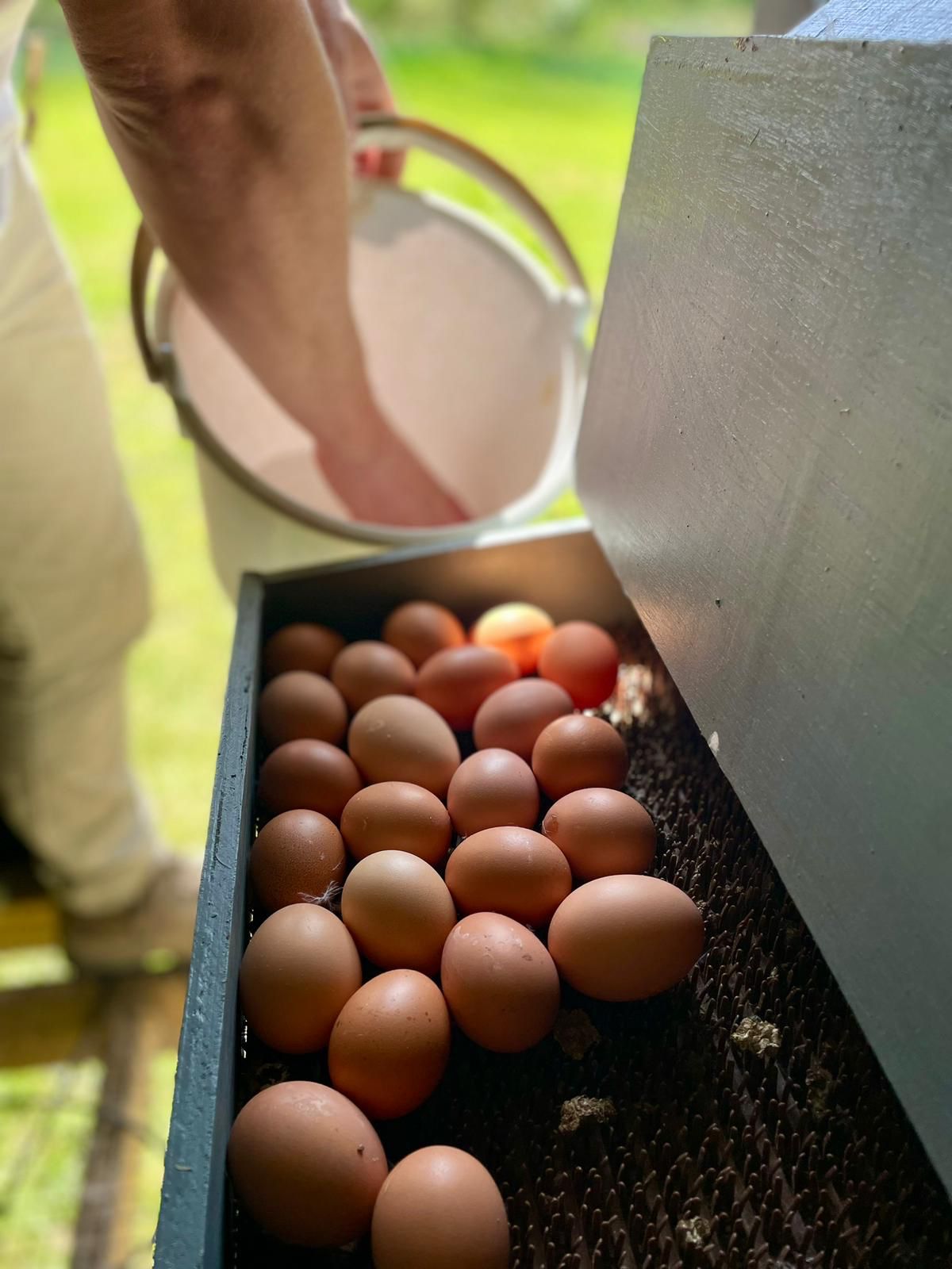 Pasture raised birds get to supplement their diet with a plethora of fresh plant species which produces a nutritious egg with twice the vitamin E and omega 3 fats than that of conventionally raised laying hens.